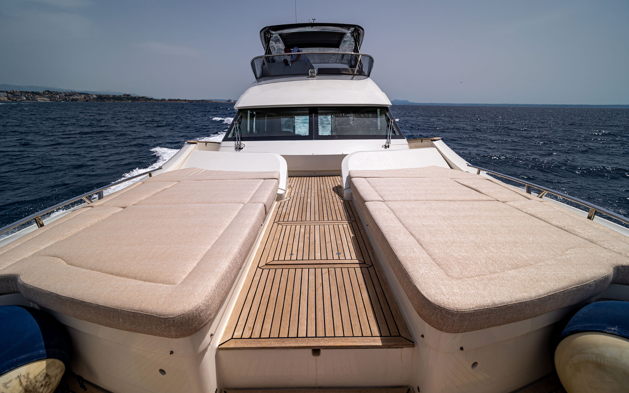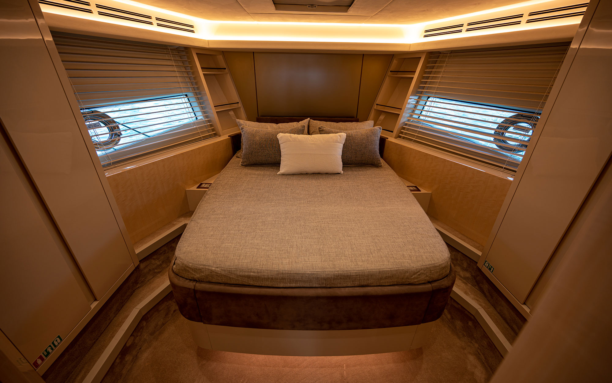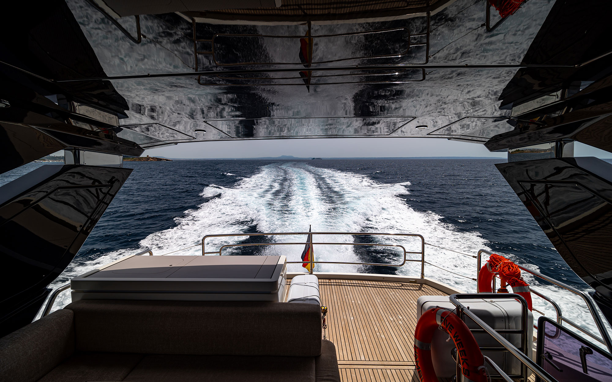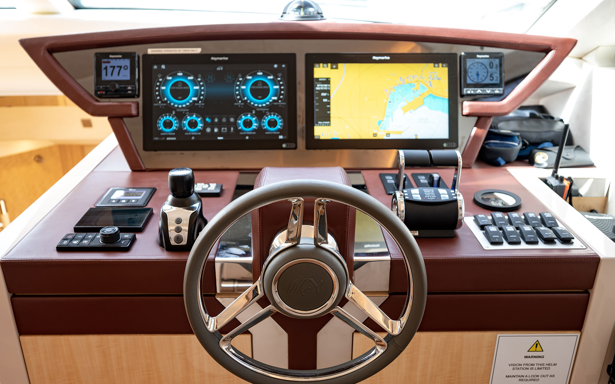 She runs a comfortable 24-knot cruise and reaches 30 knots when needed. The MAN V8s are straightforward to maintain, and with joystick, bow and stern thrusters, handling in marinas is genuinely easy, even with limited crew.